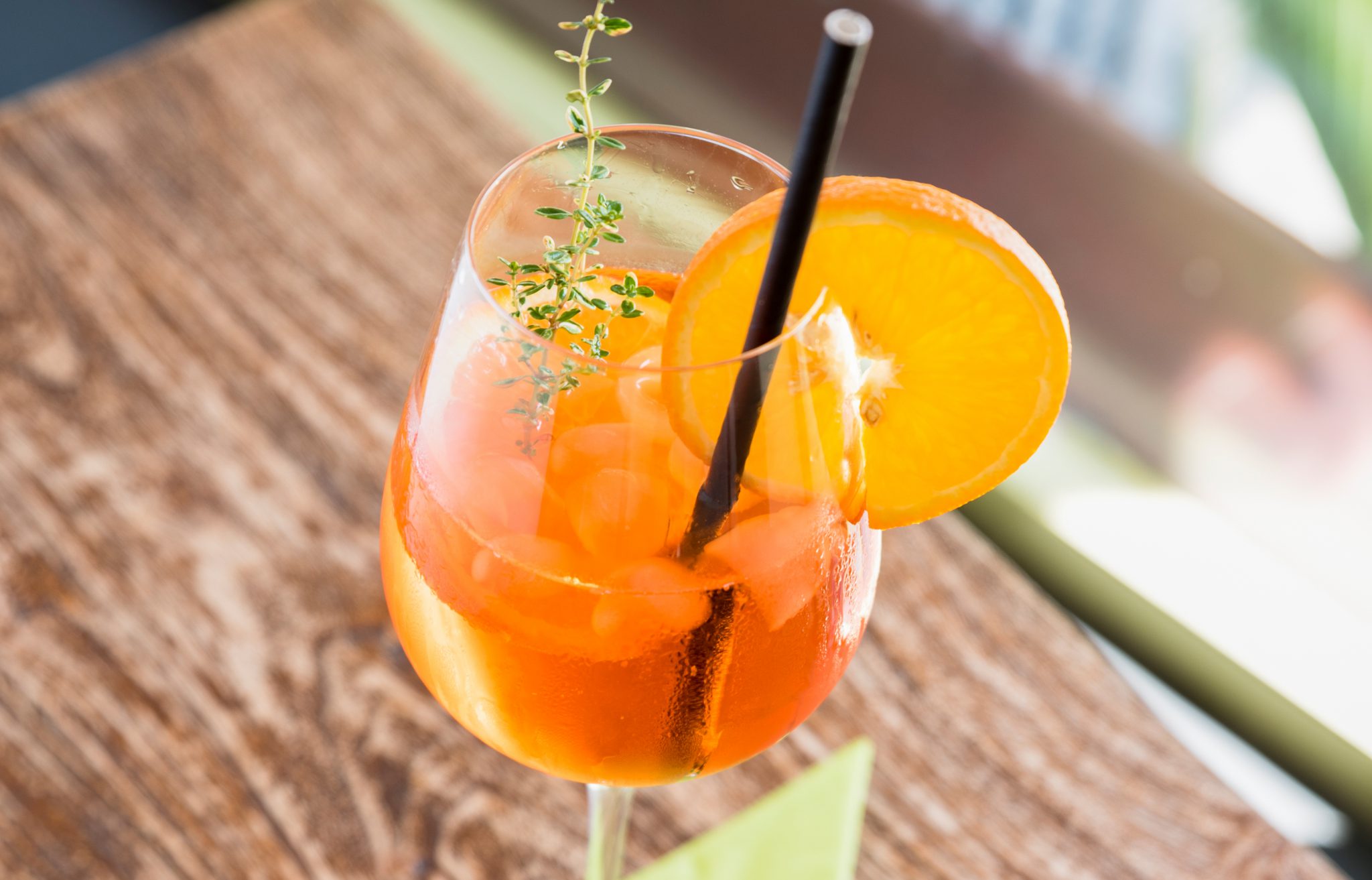 Sgroppino; prosecco met citroen sorbetijs, een scheutje wodka en een takje munt €10.25